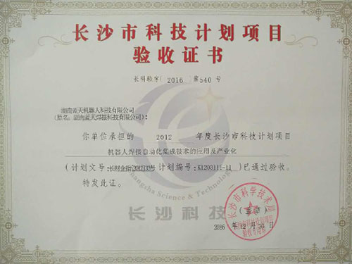 長沙市科技計劃項目驗收證書